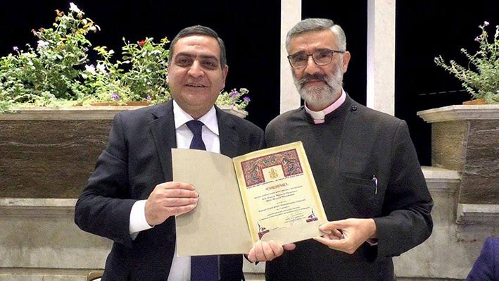 Հալէպի գլխաւոր հիւպատոսը նախապէս Բերիոյ թեմին կողմէ պարգեւատրուած էր «Բերիոյ թեմի ծառայութեան շքանշան»-ով: Սրբազան հայրը այս առիթով հիւպատոսին յանձնեց «Ծառայութեան վկայական»-ը` շեշտելով, որ անիկա կը շնորհուի իբրեւ երախտագիտութիւն գլխաւոր հիւպատոսին ազգանուէր ծառայութեան, յանձնառութեան եւ արիութեան: