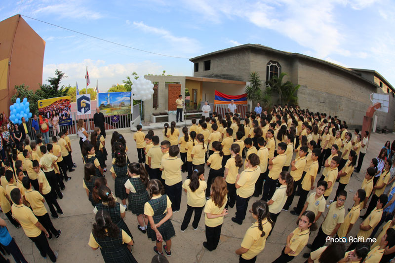 Առաւօտեան դպրոցական առաջին զանգին աշակերտները իրենց ուսուցիչներու գլխաւորութեամբ մեկտեղուեցան Հայոց ցեղասպանութեան 100-ամեակին յիշատակութեան նուիրուած խաչքարին դիմաց:
