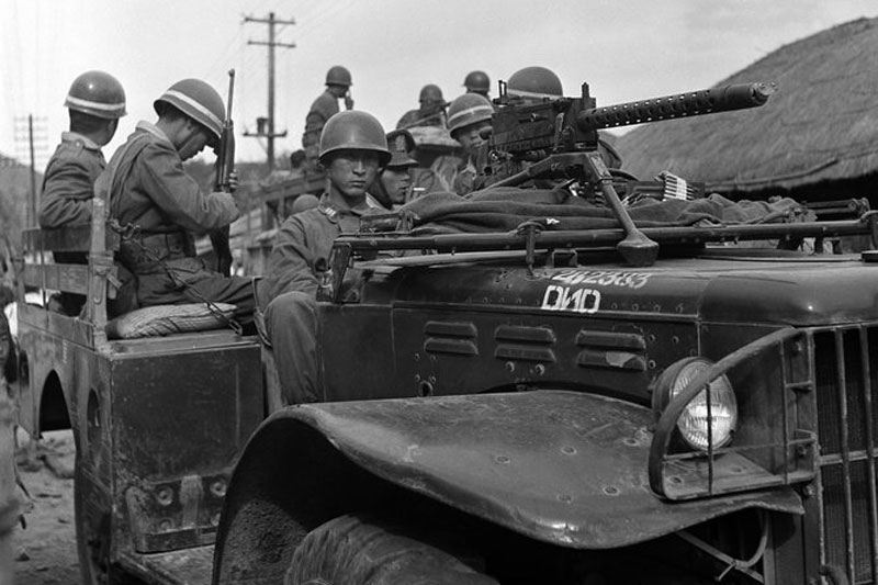 Երկրորդ աշխարհամարտէն ետք ամերիկեան բանակի մեծաթիւ միաւորներ տեղակայուած էին Ճափոնի մէջ, զօրավար Տուկլաս ՄաքԱրթըրի հրամանատարութեան տակ: Նախագահ Թրումըն ՄաքԱրթըրի հրամայեց հարաւքորէական բանակին ռազմական սպառազինութիւն մատակարարել եւ ապահովել ամերիկացի քաղաքացիներու հեռացումը Քորէայէն: Թրումըն նաեւ եօթներորդ նաւատորմին հրամայեց ապահովել Թայուանի պաշտպանութիւնը: Թայուան հաստատուած ազգայնական Չան Քայ-շէքի կառավարութիւնը ռազմական օգնութիւն խնդրեց, բայց ամերիկեան կառավարութիւնը մերժեց, որպէսզի համայնավար Չինաստանի առիթ չտայ միջամտելու քորէական պատերազմին: