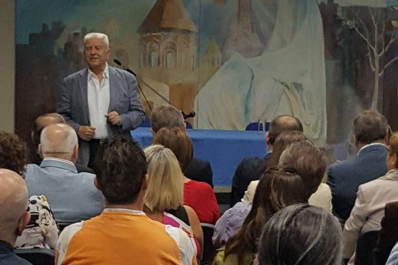 Դասախօսական հանդիպումը վարեց դոկտ. Հրայր Ճեպեճեանը, որ նախաբան կատարեց պատմութեան ընթացքին մամուլին ունեցած ազդեցութեան` հանրային կարծիքի կայացման գործընթացին վրայ: Ճեպեճեան նաեւ խօսեցաւ «Ազդակ»-ի իրականացուցած բազմաշերտ աշխատանքներու մասին` շեշտելով թերթին հրապարակումներուն առանցքը` առարկայականութիւնն ու համահայկականութիւնը: