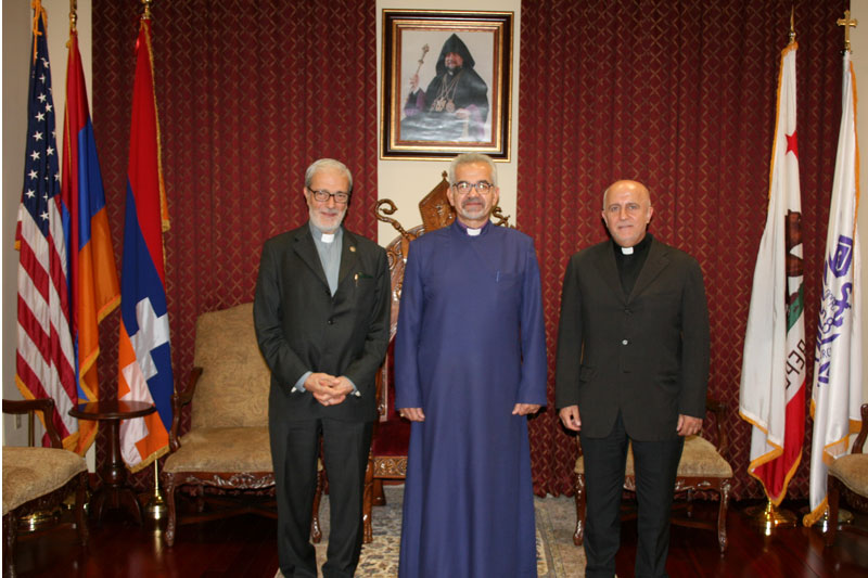 Փոխադարձ ծանօթացումէ ետք առաջնորդ սրբազանը ընդհանուր գիծերու մէջ տեղեկութիւններ փոխ տուաւ Ազգային առաջնորդարանի բազմաճիւղ առաքելութեան մասին, իսկ հիւր միաբանը ծանօթութիւններ տուաւ Մխիթարեան միաբանութեան աշխատանքներուն ու ծրագիրներուն մասին, որոնց շարքին` միաբանութեան հիմնադրութեան 300-ամեակի նշումը: Արծարծուեցան նոր սերունդի հայեցի դաստիարակութեան առնչուող հարցեր: Առաջնորդ սրբազանը գնահատանքով արտայայտուեցաւ Մխիթարեաններու մշակութային գործունէութեան մասին` անցեալին թէ այսօր, ու յաջողութիւն մաղթեց Մխիթարեան հայրերուն: