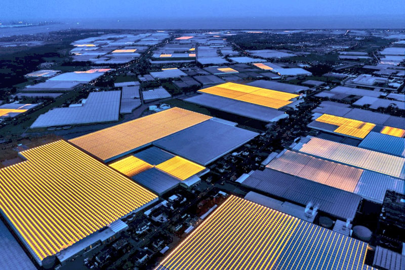 Ինչ որ կը թուի ըլլալ հսկայական հայելիներ, տարածուած` երկրի լայնքին ու երկայնքին, փայլատակելով, երբ արեւը կ՛երեւի եւ ներքին լուսաւորութեան ահարկու ցոլափայլքով` մայրամուտէն ետք: Անոնք Հոլանտայի արտասովոր ջերմոցներու համալիրներն են, որոնցմէ մեծ թիւ մը կը տարածուի 708 հազար քառ. մեթրի վրայ: