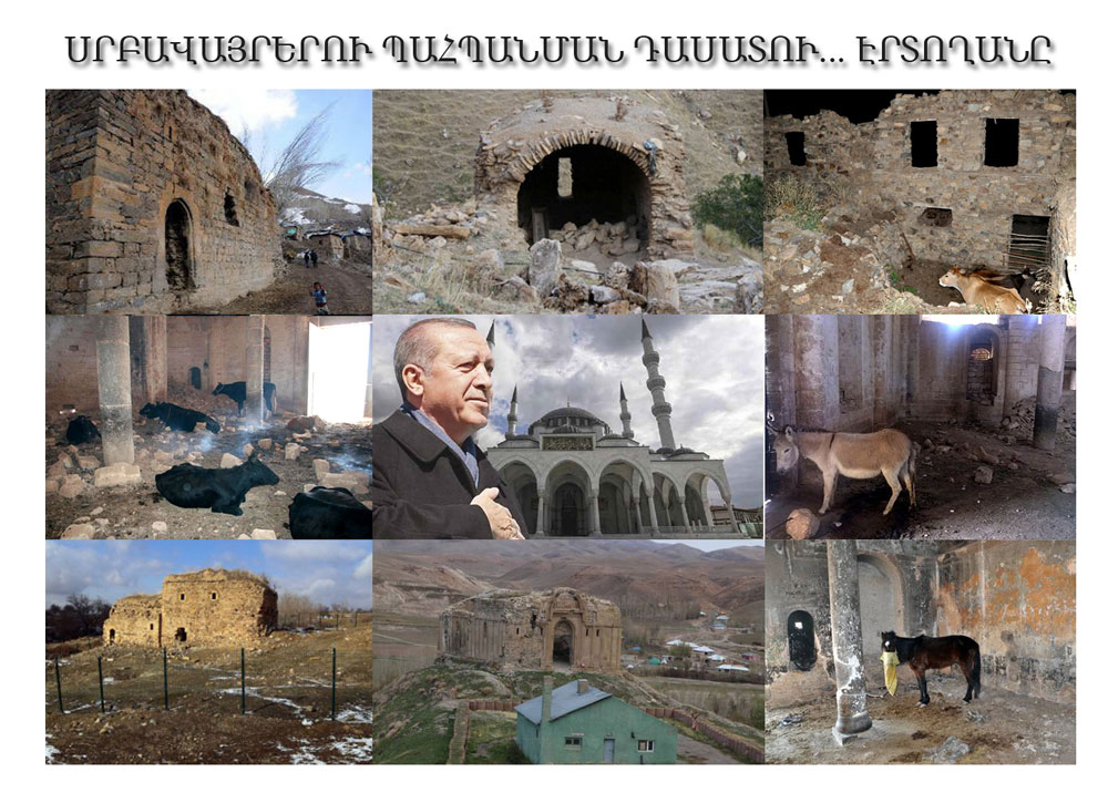 Էրտողանի ելոյթին վերոնշեալ հատուածը անմիջապէս մեզի մտածել կու տայ, որ Թուրքիոյ նախագահը, երբ կը խօսի սրբավայրերը դիտումնաւոր կերպով ախոռի վերածելու, աւերելու կամ այլ բաներու ծառայեցնելով` սրբապղծելու երեւոյթին մասին, կը մոռնայ, որ Թուրքիոյ տարածքին բռնագրաւուած հայկական հողերուն վրայ կամ այլ շրջաններուն մէջ գտնուող հայոց մշակութային ժառանգը քանի մը դարէ թուրանա-թրքական բարբարոս ծրագիրի զոհը դարձած է, որ տակաւին կը շարունակուի: