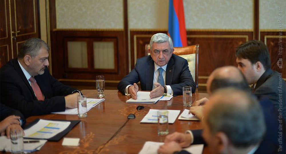 Նախագահ Սերժ Սարգսեան երէկ խորհրդակցութիւն կազմակերպած է` հանրապետութեան մէջ առանձին ապրանքատեսակներու գիներու բարձրացման եւ անոր հետեւանքներու կարելի մեղմացման ուղղուած լուծումներու քննարկման նպատակով: