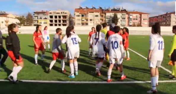 Թրքական Ֆութպոլ. Խմբային Ծեծկռտուք` Աղջկանց Մրցումի Մը Ընթացքին