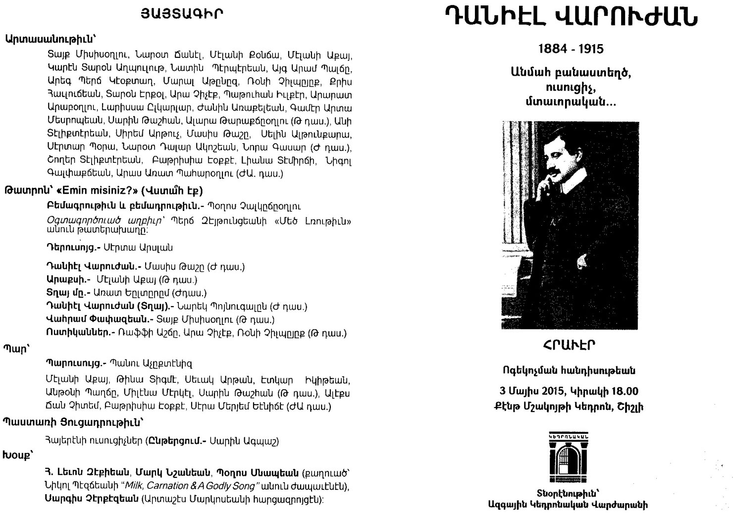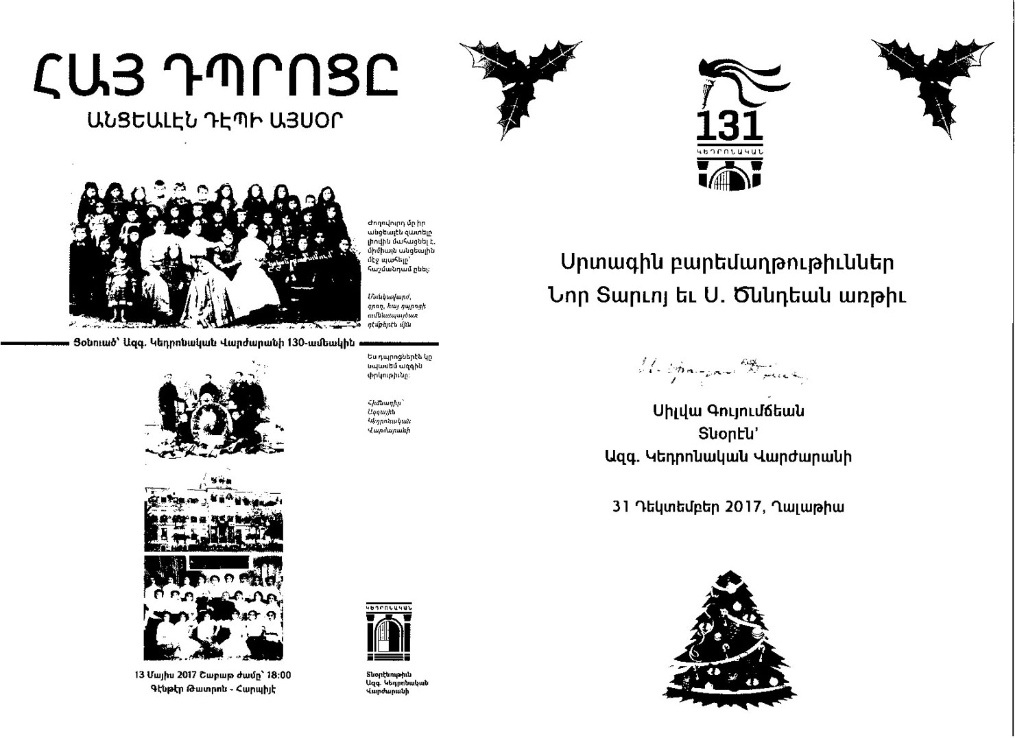 Թերեւս տնօրէնուհին յստակացուցած էր նախապէս, թէ որքան պէտք էր տեւէր այս հանդիպումը, բայց ես տարուած էի ինծի համար ներկայ շօշափելիութեամբ անծանօթ, սակայն անցեալի պատմութեամբ եւ անուններով ծանօթ միջավայրով: Կը քալէի աստիճաններէն դպրոցի մը, որ 1885-էն ի վեր բաներ ու արտադրեր էր մեծեր` Դանիէլ Վարուժան եւ ուրիշներ: Հետեւաբար յստակ չէր ինծի, որ այս աշակերտական հարազատ հանդիպումը, զգացական տարերային կարօտալի օրօրոցումը մինչեւ ե՞րբ կրնայինք շարունակել: Յետոյ Վահագնը` «Հրանդ Տինք հիմնարկ»-ի այս ծրագրի համակարգողը, առաջարկեց, որ խմբանկար մը առնենք: Տնօրէնութիւն, ուսուցիչներ եւ աշակերտութիւն նկարուեցանք, ու աւարտեցաւ պաշտօնական բաժինը հանդիպումին, աշակերտները անցան իրենց դասարանները: Անոնցմէ մին, սակայն, մօտեցաւ եւ ըսաւ ինծի. «Գիտէ՞ք` ի՛նչ տարէք,- ու շարունակեց,- մենք հոս ենք…»: Աւելին չէի կրնար լսել, ստիպուած էի դէմքս շրջել ու աչքերս փախցնել այդ տղայէն, մինչ միտքս ինքնամփոփուեցաւ…