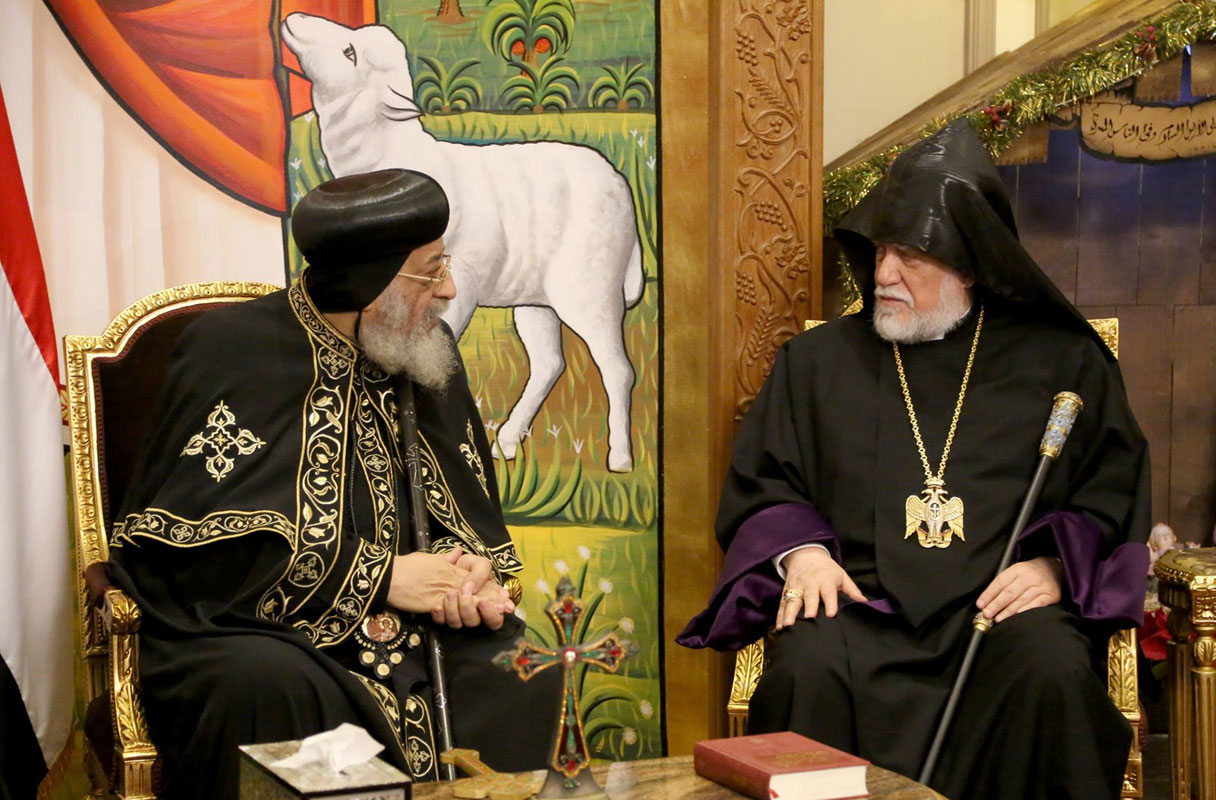 Գահիրէ հասնելէն անմիջապէս ետք, Արամ Ա. վեհափառ հայրապետը հանդիպում մը ունեցաւ Ղպտի եկեղեցւոյ պետ Թէոդորոս Բ. պատրիարքին հետ: Ապա, հանդիպումին միացաւ Մարոնի եկեղեցւոյ պետ Պշարա Ռայի պատրիարքը: Երկու եկեղեցիներու պատուիրակութեանց ներկայութեան տեղի ունեցաւ յիշեալ հանդիպումը: