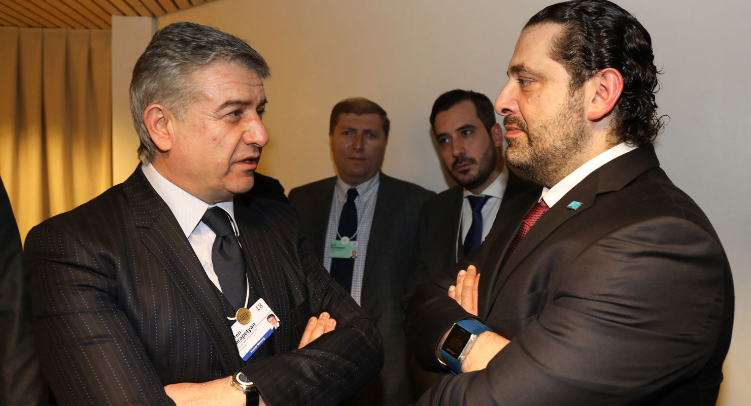 Տաւոսի մէջ տեղի ունեցող Համաշխարհային տնտեսական համաժողովի շրջագիծին մէջ Հայաստանի Հանրապետութեան վարչապետ Կարէն Կարապետեան հանդիպում ունեցած է Լիբանանի վարչապետ Սաատ Հարիրիի հետ: