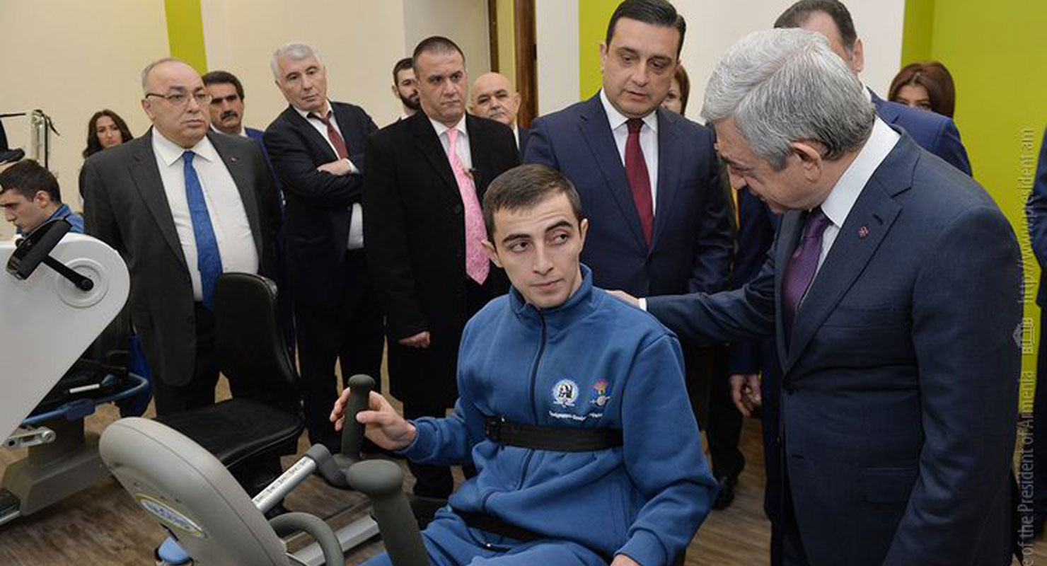 Նախագահը պաշտպանութեան նախարար Վիգէն Սարգսեանի, ԵՊԲՀ-ի նախագահ Արմէն Մուրադեանի եւ շարք մը բարերարներու ընկերակցութեամբ շրջած է վերականգնողական կեդրոնին մէջ, ծանօթացած իր նախորդ այցելութենէն ետք` քանի մը ամսուան ընթացքին կատարուած մեծ ծաւալի աշխատանքներուն, զինուոր հաշմանդամներու համար հիմնուած վերականգնողական մասնագիտական կեդրոնի ընթացիկ գործունէութեան ու զարգացման հետագայ ծրագիրներուն: Սերժ Սարգսեան զրուցած է նաեւ կեդրոնին մէջ արդէն իրենց վերականգնողական բուժումը ստացող հայրենիքի պաշտպաններուն հետ: