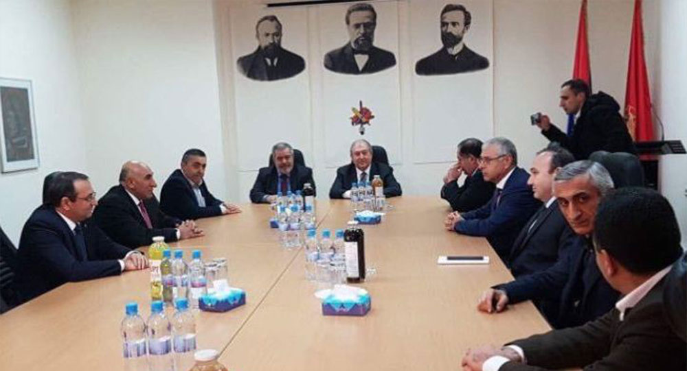 Երէկ ՀՅԴ Բիւրոյի գրասենեակին մէջ տեղի ունեցած է Հայաստանի Հանրապետական կուսակցութեան (ՀՀԿ) կողմէ առաջադրուած նախագահի թեկնածու Արմէն Սարգսեանի եւ ՀՅԴ Բիւրոյի եւ Գերագոյն մարմինի ներկայացուցիչներուն միջեւ հանդիպումը: Նախքան հանդիպումին սկսիլը Սարգսեան լրագրողներու հետ զրոյցի մը ընթացքին չյստակացուց` կ՛ընդունի՞ արդեօք նախագահ Սերժ Սարգսեանի առաջարկը: