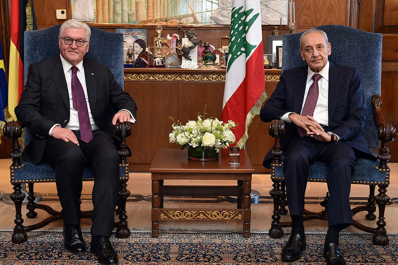 Խորհրդարանի նախագահ Նեպիհ Պըրրի երէկ Այն Թինէի մէջ ընդունեց Գերմանիոյ նախագահ Ֆրանք Վալթեր Շթայնմայերը, որուն հետ քննարկեց լիբանանեան իրադարձութիւնները` բարձր գնահատելով Գերմանիոյ մասնակցութիւնը ՖԻՆԻՒԼ-ի միջազգային խաղաղապահ ուժերու առաքելութեան, ինչպէս նաեւ Գերմանիոյ ունեցած դերակատարութիւնը` Սուրիոյ տագնապին քաղաքական լուծում ապահովելու իմաստով: