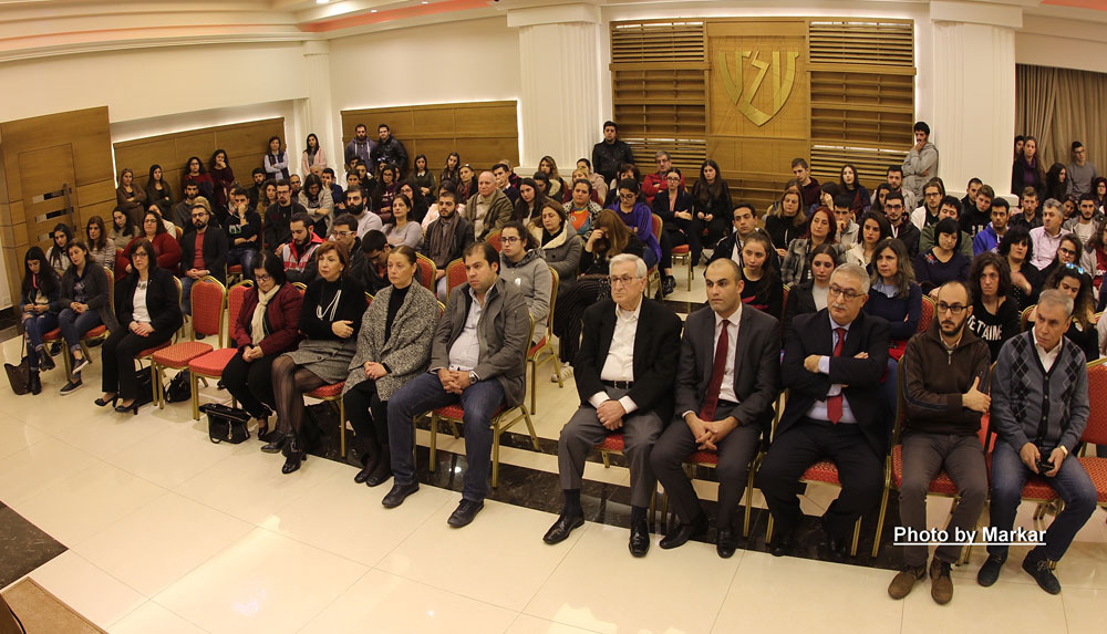 Ապա խօսքը ուսանողներուն ուղղելով` Քրիստին Դանիէլեան-Սարգիսեան ըսաւ, թէ հպարտութիւն է տեսնել հայ ուսանողներ` տարածուած տարբեր համալսարաններու մէջ, բացուած տարբեր գաղափարներու եւ մտածելակերպերու, վստահութիւն յայտնելով, որ անոնք իրենց սրբազան լեզուին եւ դարաւոր արժէքներուն կառչած մնալով բարձր կը պահեն հայու անունը եւ միասնականութեան ու ազգասիրութեան գերագոյն օրինակ կը հանդիսանան բոլորին, ուր ալ գտնուին: Ըստ անոր, այսօր դժուար է հոսանքն ի վեր թիավարելը, մարդկային ու հայկական բարձր արժէքներով առաջնորդուիլը, որովհետեւ վեհ գաղափարները սկսած են քայքայուիլ, օտարամոլութիւնը բոյն դրած է, բայց եւ այնպէս երիտասարդութիւնը պէտք է կառչի մարդկայինին ու ազգայինին, Հայաստանի Հանրապետութեան 100-ամեակին առիթով ըլլայ անկախութեան ջահը վառ պահողն ու հայկական շունչն ու ոգին յաջորդող սերունդներուն փոխանցող պատասխանատուն` միշտ անարատ պահելով հայուն նկարագիրը: Իր խօսքը եզրափակելով` ան ըսաւ. «Ձեր մէջէն մօտիկ ապագային մէջտեղ պիտի գան հայ ազգը ղեկավարող առաջնորդներ, հայ թէ օտար կազմակերպութիւններուն մէջ գործող պատասխանատու մասնագէտներ: Երբ այդ դիրքերուն վրայ գտնուիք, չզլանաք ձեր ներդրումը բերելու հայ իրականութեան եւ կենդանի պահելու ձեզի կտակուած հայապահպանման առաքելութիւնը»: