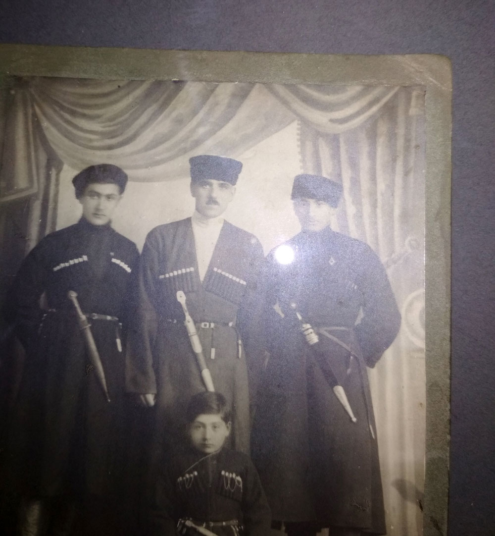 «Ուղարկում եմ Աննայի հօր մասին փոքրիկ տեղեկութիւն եւ 2 նկար… Գրիգորը աջից առաջինն է` կանգնած: Գրիգոր Տէր Պետրոսեանը ծնուել է Մուշի Թէղուտ գիւղը: Մակար կաթողիկոսի եղբօր` Մխիթարի ճիւղից է: 16 տարեկանին միացել է կամաւորական հեծելազօրային մի ջոկատի, որի հրամանատարը Հայկ Բժշկեանն էր: Այս ջոկատը կռւում էր հայկական 6-րդ կամաւորական գնդի հետ: 1917-ին պոլշեւիկեան յեղափոխութեան լուրն առնելով, Բժշկեանը միանում է ռուսական զօրքին` ցարին գահընկէց անելու եւ յեղափոխութիւնը աւարտին հասցնելու համար