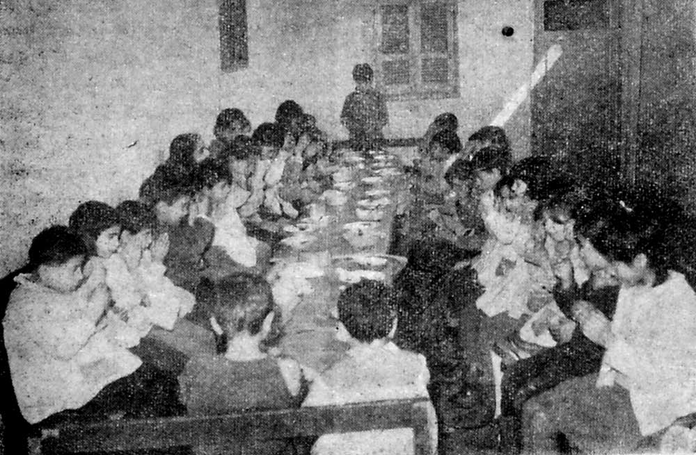 Նկարին վրայ, Քարանթինայի Ազգային Մեսրոպեան վարժարանէն խումբ մը աշակերտներ` կէսօրուան ճաշի պահուն: Լիբանանահայ օգնութեան խաչը հոգածու մայր մըն է այս երեխաներուն համար: Սեղանին վրայ պնակ մը տաք կերակուրը կարելի կը դառնայ աւանդական դարձած հանգանակութեամբ մը: