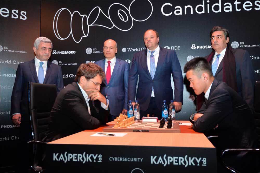 Հայաստանի նախագահ եւ Հայաստանի ճատրակի ֆետերասիոնի նախագահ Սերժ Սարգսեան, որ ներկայ էր բացման մրցումին, իր կատարած խորհրդանշական քայլով ազդանշանը տուաւ Լեւոն Արոնեան (Հայաստան) – Տին Լիրեն (Չինաստան) ճակատումին: