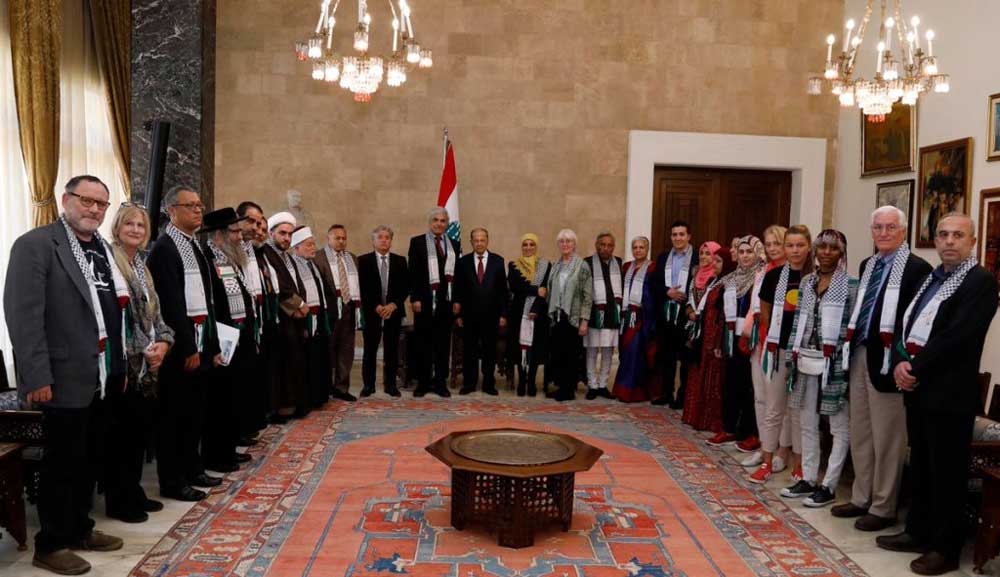 Հանրապետութեան նախագահ զօր. Միշել Աուն երէկ նախագահական պալատին մէջ ընդունեց Պաղեստին վերադարձի համաշխարհային արշաւը ներկայացնող պատուիրակութիւն մը, որուն ներկայութեան մաղթեց, որ պաղեստինցի ժողովուրդի ազատութեան եւ իր հողին վրայ խաղաղ ապրելու իրաւունքին համար ի գործ դրուած բոլոր ջանքերը յաջողութեամբ աւարտին: