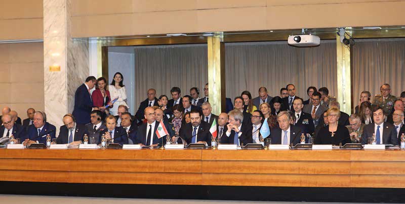 «Հռոմ 2» խորհրդաժողովին մասնակից պետութիւնները բարձր գնահատեցին շրջանային տագնապներուն մէջ չներքաշուելու Լիբանանի կառավարութեան որոշումը եւ կոչ ուղղեցին անոր` յանձնառու մնալու Միջին Արեւելքի տագնապներէն ինքզինք զանց կացուցելու Լիբանանի քաղաքականութեան: