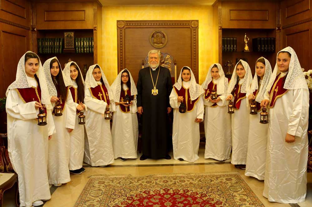 Արարողութեան աւարտին, տասը կոյսերը, մայր տաճարի լուսարարապետ Փառէն ծ. վրդ. Վարդանեանի առաջնորդութեամբ, բարձրացան վեհարան, ուր Արամ Ա. կաթողիկոս հայրական սիրով ընդունեց եւ յուշանուէրներ տալով օրհնեց զանոնք: