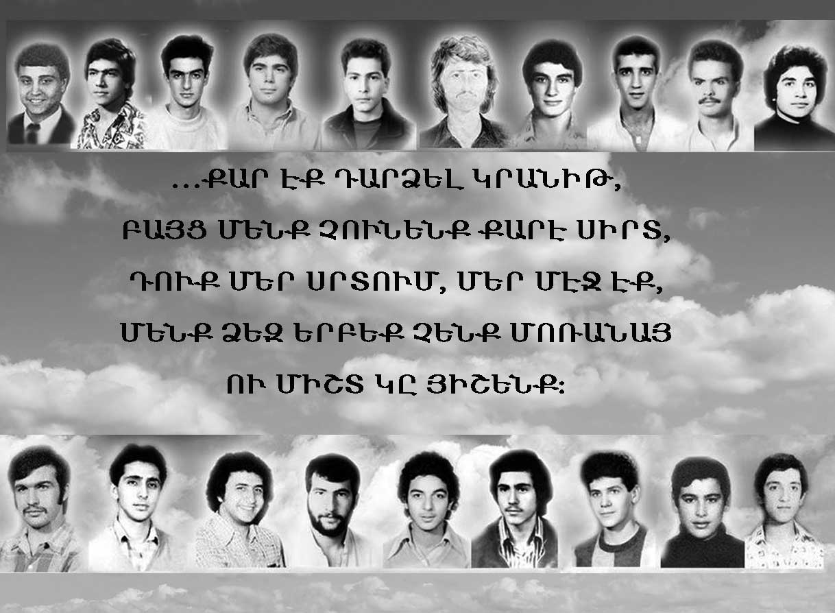 Եւ այսօր, լիբանանահայ յարգելի՛ ազգակիցներ, ըլլաք դուք Լիբանանի մէջ կամ այլուր, այս նկարը ձեր առջեւ կը դնեմ, որ ձեր յիշողութիւնը թարմանայ եւ անդրադառնաք, թէ ո՛վ է հայութեան իրաւ եւ ճշմարիտ տէրն ու պաշտպանը: Նայեցէ՛ք այս տղոց աչքերուն եւ յիշեցէ՛ք, որ ձեր գաղութին եւ հայութեան համար անոնց թափած արեան դիմաց պարտաւոր էք զօրակցութիւն յայտնել զանոնք մատաղ մատուցած կուսակցութեան` Դաշնակցութեան, որպէսզի ան միշտ հզօր մնայ եւ ատակ ըլլայ տէր կանգնելու հայութեան իրաւունքներուն եւ մեր սրբազան Դատին: