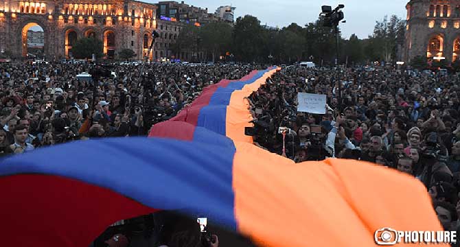 Այս ընթացքին Փաշինեան բարձրախօսով յորդորած է քաղաքացիները «դուրս ելլել եւ տէր կանգնիլ երկրին ու ազատութեան»: