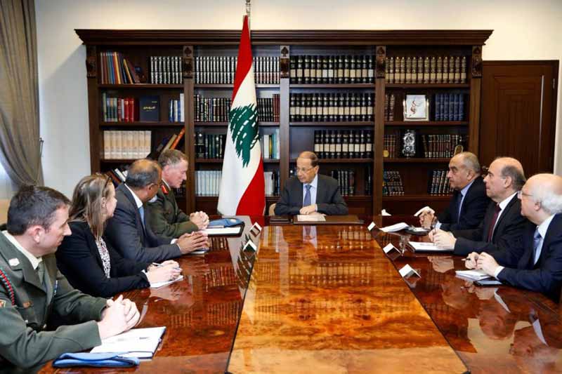 Հանրապետութեան նախագահ զօր. Միշել Աուն երէկ նախագահական պալատին մէջ ընդունեց հարաւային Լիբանանի մէջ տեղակայուած ՖԻՆԻՒԼ-ի միջազգային խաղաղապահ ուժերու հրամանատար զօր. Մայքըլ Պերին, որուն հետ քննարկեց հարաւային Լիբանանի մէջ տիրող իրավիճակը եւ ՖԻՆԻՒԼ-ի ուժերուն ի գործ դրած աշխատանքները:
