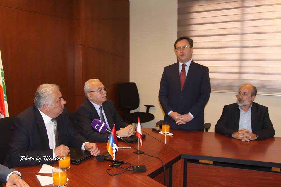Արցախ Ռուց Ինվեսթմընց` ԱՌԻ ընկերակցութեան հրաւէրով Լիբանան ժամանած Արցախի պաշտօնական պատուիրակութիւնը երէկ այցելեց Պուրճ Համուտի քաղաքապետարան: Պատուիրակութեան մաս կը կազմէին Արցախի Հանրապետութեան տնտեսութեան եւ արտադրական ենթակառուցուածքներու նախարար Լեւոն Գրիգորեան, նախարարի խորհրդական Տիգրան Նաճարեան, Մարտակերտի եւ Կովսականի քաղաքապետներ Միշա Գիւրճեան ու Ռազմիկ Մարգարեան եւ ՀՅԴ Արցախի Կեդրոնական կոմիտէի անդամ Վահագն Տատայեան: Պատուիրակութեան հետ հանդիպումի առաջին բաժինը ծանօթացման հիմք ունէր: Պատուիրակութիւնը ծանօթացաւ Պուրճ Համուտի քաղաքապետարանի բաժիններուն եւ ընդհանուր գործունէութեան, ապա երկրորդ բաժինով տեղի ունեցաւ Մարտակերտի քաղաքապետին եւ Պուրճ Համուտի քաղաքապետին միջեւ համագործակցութեան յուշագիրի ստորագրութեան պաշտօնական արարողութիւն` ներկայութեամբ քաղաքապետարանի խորհրդականներուն, անդամներուն եւ Լիբանանի մէջ Հայաստանի Հանրապետութեան դեսպանութեան անձնակազմին:
