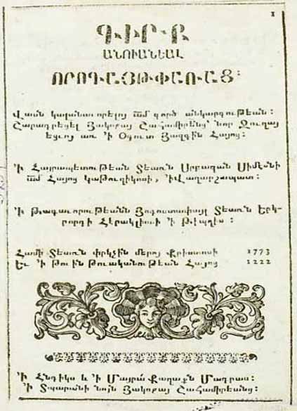 «Թէպէտ ինձ համար տխուր է յիշեցնել անօրէններից մեր ազգին հասցուած գարշելի նախատինքը, որ յարաժամ կրում ենք մեր ուսերին, չեմ ուզում յիշեցնել այն ամէնը, ինչ ես գիտեմ, գուցէ դու հանդիպես անօրէնների հովանու տակ բնակուող մարդու, վերահասու եղիր, թէ ինչ բառով են կանչում հայոց ազգին` փոխանակ անյաղթելի թորգոմցիների անուան: Ու մենք` հայերս, քաջ Հայկի որդիներս, Նախիջեւան աշխարհի օրհնեալ ծնունդներս, ջրհեղեղի խեղդամահից ընդհանուր մարդկային բնութեան եւ ընդհանուր աշխարհի փրկութեան պատճառ դարձածներս, փոխանակ յատկապէս պատուի արժանանալու, յատկապէս մարդկութեան համար` նախատինք եւ ժողովուրդների համար արհամարհանք եղանք` մեր անկարգութեան պատճառով: Ուրեմն պատշաճ չէ, որ յաւիտեան շարունակենք մնալ այսպէս, քանզի մարդկային միեւնոյն բնութիւնն ունենք, ինչպէս` այժմեան բոլոր երջանիկ ազգերը արեգակի ներքոյ, նաեւ մեզ վրայ ենք կրում Տիրոջ յատուկ շնորհն ու ողորմութիւնը, չէ՞ որ մեզ տուեց Աշխարհն Արարատեան` պարարտ ամէն տեսակի գոյակցութեամբ: Թէպէտ ես չեմ երդւում, որովհետեւ մեղք է, բայց իմ մտքում համոզուած եմ, որ մինչեւ չհաստատուի կարգ ու օրէնք, կարգ ու կանոն, ծուլութիւնը մեզնից չի վերանայ, թոյլ չի տայ փայփայելու մեր ազգին: Եւ մեզանում ծնունդ առած ամէն մեծարժէք բանի գեղեցկութիւնը չի երեւայ, մինչեւ չստեղծուի օրէնք ու սահման»: