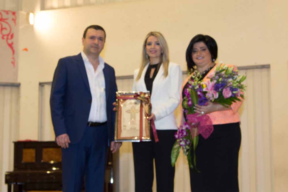 Ապա տնօրէնն ու Տիկնանց յանձնախումբին ատենապետը օրուան նախագահին նուիրեցին երախտագիտութեան յուշանուէր մը: