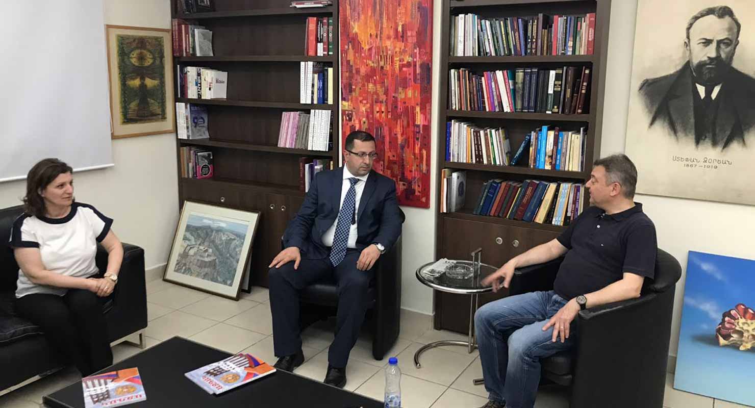Այցելութիւնը առիթ եղաւ նաեւ զրուցելու Լրագրողներու համահայկական 9-րդ համաժողովին արծարծուած խնդիրներուն, այդ առիթով կազմակերպուած Հայաստանի Հանրապետութեան կրթութեան եւ գիտութեան նոր նշանակուած նախարար Արայիկ Յարութիւնեանի հետ հանդիպման եւ ընդհանրապէս համահայկական լրագրողական համայնքի կառուցակարգման համար կատարուած առաջարկներուն մասին: