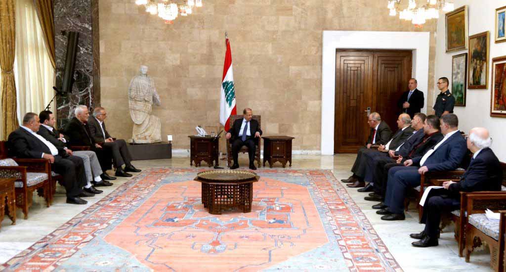 Հանրապետութեան նախագահ զօր. Միշել Աուն երէկ նախագահական պալատին մէջ ընդունեց Պաալպեք-Հերմելի վաճառատուներու եւ հաստատութիւններու սեփականատէրերու սենտիքայի մէկ պատուիրակութիւնը, որուն մաս կազմեց նաեւ սենտիքայի նախագահ Մոհամետ Քանաանը` ընկերակցութեամբ երեսփոխան Ալի Մըքտատի: