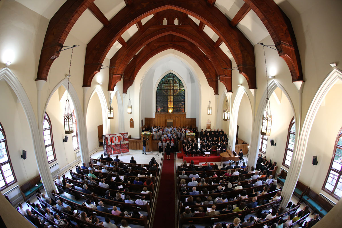 Փառաբանութեան աղօթքով հանդէս եկաւ վեր. Հրայր Չոլագեան: Ապա ժողովուրդը հրաւիրեց, որ «Փառք եւ պատիւ» փառաբանութեան հոգեւոր երգեն: Հայ աւետարանական Շամլեան-Թաթիկեան երկրորդական վարժարանի աշակերտներ Րաֆֆի Մինասեան եւ Լիլիթ Յովհաննէսեան ընթերցեցին Սաղմոս 96-ը փոխասացութեամբ: Այնուհետեւ Հայ աւետարանական վարժարաններու միացեալ աշակերտական երգչախումբը ներկայացուց «Թուէ՛օրհնութիւններդ», «Alleluia, Hallelujah» եւ Զաքար Քէշիշեանի յօրինած «Ապրիլ, կրկին ապրիլ» երգերը` խմբավարութեամբ Նեկտար Փալազեանի եւ դաշնամուրի նուագակցութեամբ Մարիա Բարսեղեանի:
