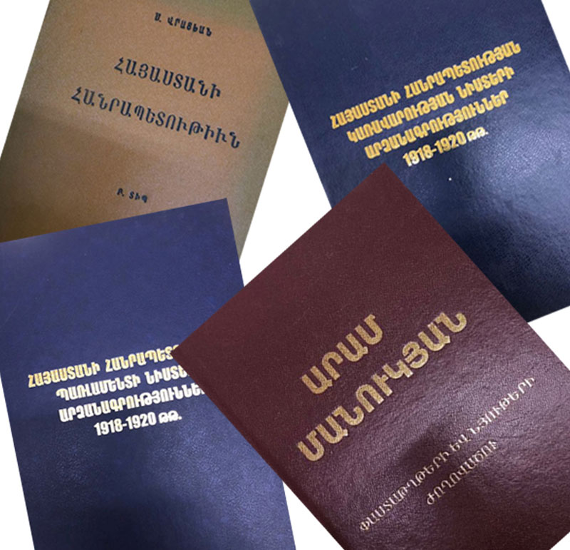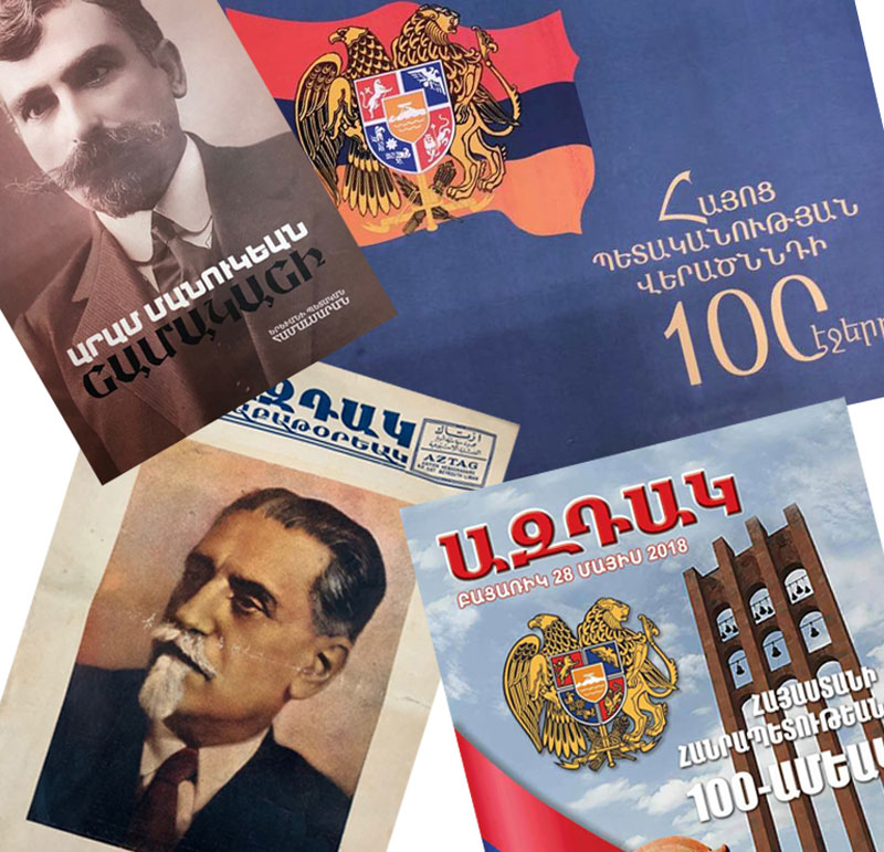 «Ազդակ»-ի ելեկտրոնային գրադարանը հարստացած է այս առիթով Սիմոն Վրացեանի հաստափոր հատորով` «Հայաստանի Հանրապետութիւնը»: Ապա իբրեւ նորագոյն հրատարակութիւն, արդէն աւարտած է այս ուղղութեամբ աշխատանքը Երեւանի մէջ վերջերս լոյս տեսած Հայոց պետականութեան վերածնունդի 100 էջերը գեղատիպ լուսանկարներ ամփոփող ալպոմին, ուր լոյս տեսած են ոչ միայն Ա. Հանրապետութեան առնչուող լուսանկարներ եւ համապատասխան բացատրութիւններ, այլ նաեւ բնագրային ձեռագիրներ, վաւերաթուղթեր: