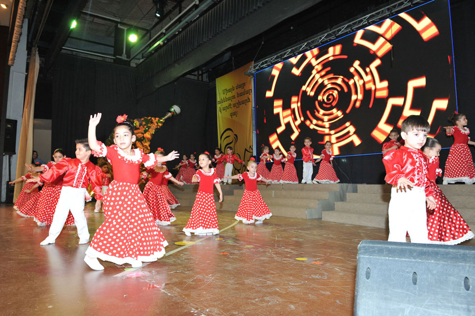 «Մամ ջան» երգին ընկերակցութեամբ շրջանաւարտ աշակերտները իրենց մայրերուն հետ մտան սրահ եւ բարձրացան բեմ: Անոնք իրենց մանկական անմեղութեամբ շնորհակալութիւն յայտնեցին իրենց ուսուցչուհիներուն եւ կատարեցին «Արեւի մարդիկ» եւ «Մնաս բարով մանկապարտէզ» երգերը: