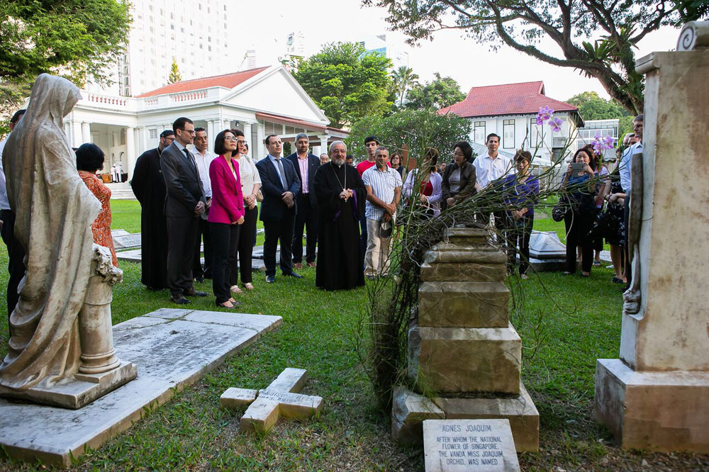 «Աշխէն Յովակիմեանը (Ակնես Ճոագիմ) Սինկափուր ծնած առաջին անձն էր, որ խառնածին խոլորց (օրքիտ) ծաղիկի տեսակը աճեցուց: Եւ այս ծաղիկը Սինկափուրի ազգային ծաղիկը համարուեցաւ եւ կը կոչուի «Վանտա միս Ճոագիմ» (Vanda Miss Joaquim): Փոքր համայնքին համար բաւական բան իրագործուած է անցեալին: Այսօր համայնքը կը պահպանէ իր կառոյցները կամաւոր աշխատողներով: Վճարովի անդամներ չունինք: Կը հրաւիրենք Սինկափուր եկած աշխարհի որեւէ անկիւնէն հայեր, որպէսզի օգնեն մեզի, որովհետեւ շատ դժուար է հնութիւնը պահպանել եւ խնամել: Սինկափուրի կառավարութիւնը շատ աջակցող է: Կը դիմենք կառավարութեան եւ կը ստանանք նիւթական օժանդակութիւններ` եկեղեցւոյ վերանորոգութեան եւ բարեզարդման աշխատանքներ կատարելու, շրջափակի ցանկապատները վերանորոգելու համար: Թէեւ կը ստանանք օժանդակութիւն, բայց մէկը պէտք է, որ պետական թուղթերը ամբողջացնէ ու պատրաստէ: