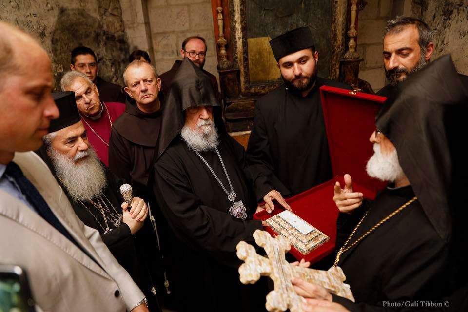 Սուրբ Յարութեան տաճարին մէջ Ս. Արեւմաթացու հայկական մատուռ այցելութեան ընթացքին արքայազն Ուիլիըմը ողջունած է տաճարի հայ տեսուչ Սամուէլ ծայրագոյն վարդապետ Աղոյեանը եւ պատրիարքարանի անունով անոր նուիրած է հայկական խաչ: