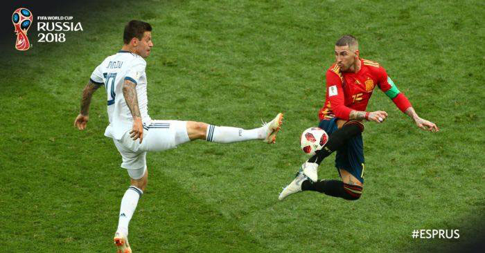 Լուժնիքիի դաշտին վրայ տեղի ունեցած մրցումին, որուն ներկայ գտնուեցան 78 հազար հանդիսատեսներ, հիւրընկալ երկիրը` Ռուսիա, կրցաւ գոհ ձգել իր հազարաւոր համակիրները, երբ մրցաշարքէն դուրս ձգեց աստղերով հարուստ Սպանիոյ տինամիք կազմը: