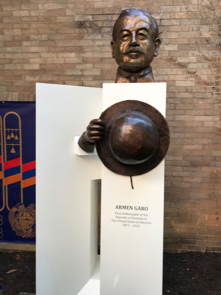 Այս առիթով բացումը կատարուեցաւ դեսպանատան շէնքին առջեւ տեղադրուած, Միացեալ Նահանգներու մէջ ծառայած Հայաստանի առաջին դեսպան եւ դեսպանատան հիմնադիր` Արմէն Գարոյի յուշարձանին, որուն հեղինակն է քանատահայ քանդակագործ Մկրտիչ Տարագճեանը, իսկ ճարտարապետը` Արամ Ալաճաճեանը: