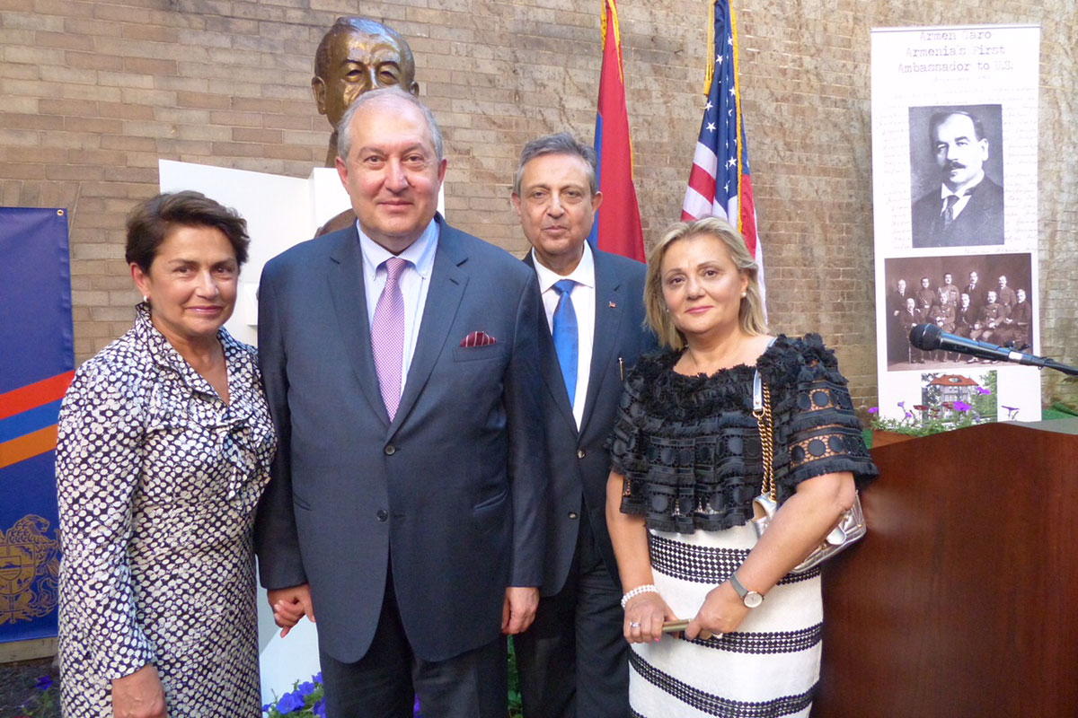 Հայաստանի Հանրապետութեան հիմնադրութեան 100-ամեակին առիթով, յունիս 28-ի երեկոյեան Ուաշինկթընի մէջ Հայաստանի դեսպանութիւնը կազմակերպած էր յատուկ նախաձեռնութիւն մը` ի պատիւ Հայաստանի նախագահ Արմէն Սարգսեանի: Ներկայ էին` պետական հիւրեր, Հայաստանի մէջ Միացեալ Նահանգներու դեսպան Ռիչըրտ Միլսը, հոգեւորականներ, հայկական կազմակերպութեանց ներկայացուցիչներ եւ բազմաթիւ հրաւիրեալներ: