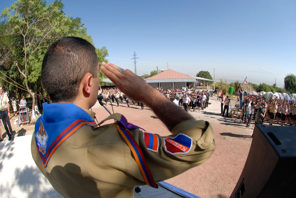 Թ. Օ.- Բանակումի պաշտօնական բացումը Բիւրականի մէջ տեղի պիտի ունենայ յուլիս 19-ին, կէսօրէ ետք, իսկ կէսօրէ առաջ բանակավայրին մէջ պիտի ըլլայ յուշաքանդակի մը բացումը: Կանոնաւոր յայտագիրը կը սկսի ուրբաթ: 16 եւ վեր տարիք ունեցողները պիտի բարձրանան Արագած` երկու անգամով: Երկու ուղղութեամբ շրջապտոյտներ պիտի ըլլան այդ օր: Շրջաններ պիտի ուղղուին Նորավանք եւ Խոր Վիրապ, իսկ այլ շրջաններ` Սեւանայ լիճ եւ Հայրավանք, եւ փոքր խմբակ մըն ալ Ծաղկաձոր եւ Կեչառիս պիտի երթայ: Մնացեալները բանակավայրին մէջ սկաուտական աշխատանք պիտի կատարեն: Շաբաթ կէսօրէ առաջ ունինք 100-ամեակին նուիրուած զարգացման մրցում. հարցարանները նախապէս ուղարկուած են շրջաններուն: Կէսօրէ ետք բանակումին մեծաշուք պաշտօնական բացումը տեղի պիտի ունենայ, օփերայէն մինչեւ Հանրապետութեան հրապարակ տեղի պիտի ունենայ տողանցք, որուն պիտի մասնակցին նախկին խմբապետները: Ապա պիտի երթանք Ծիծեռնակաբերդ` գիշերային այցելութիւն մը տալու: