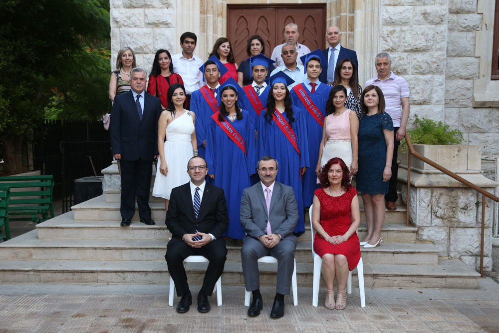 Շրջանաւարտներու եւ ուսուցչակազմի հանդիսաւոր մուտքէն ետք հնչեցին Լիբանանի եւ Հայաստանի զոյգ քայլերգները, ապա վեր. Հրայր Չոլագեան Աստուածաշունչ մատեանէն ընթերցումներ կատարեց, ողջունեց ներկաները եւ աղօթքի ընդմէջէն իր բարեմաղթանքները յայտնեց բոլորին: