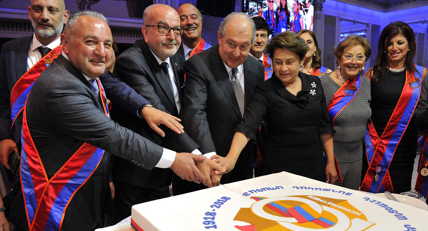 Նախագահ Արմէն Սարգսեան շնորհաւորեց ՀՄԸՄ-ի 100-ամեակը եւ նշեց, որ իր առաջին ծանօթութիւնը համահայկական այս կազմակերպութեան հետ եղած է 34 տարի առաջ, 1984-ին, երբ տակաւին խորհրդային դիւանագէտ, ան այցելած է ՀՄԸՄ-ի Լոնտոնի մէկ բանակումը, ուր առաջին անգամ նկարուած է Եռագոյն դրօշին ներքեւ:
