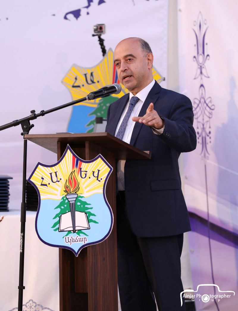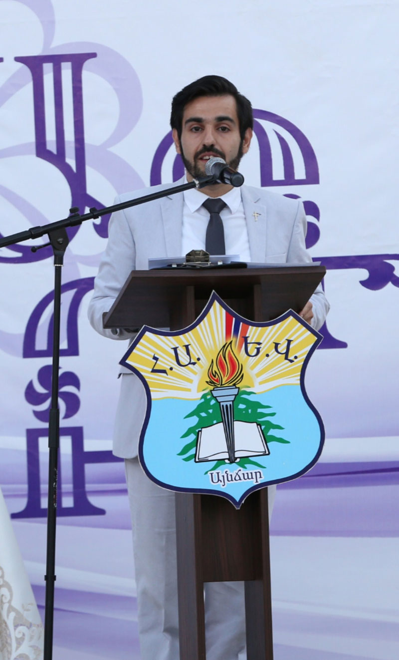 Ապա հայկական նազպարով հանդէս եկաւ վարժարանին պարախումբը, որմէ ետք 12-րդ դասարանի աշակերտներէն Լորա Հերկելեանը, Մելիսա Մարտիկեանը եւ Թալին Քենտիրճեանը հայերէն, արաբերէն եւ անգլերէն լեզուներով ուղերձներուն միջոցով յաջորդաբար արտայայտեցին իրենց անցեալի, ներկայի եւ ապագայի մարտահրաւէրները, քաղուած դասերը եւ անմոռանալի յիշատակները` յուզմունքով եւ երախտագիտութեամբ: