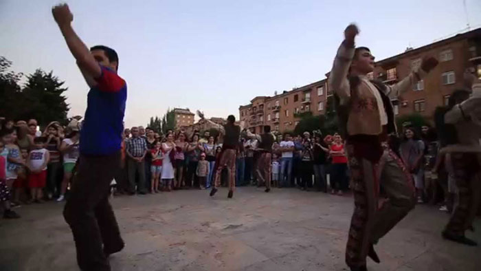 Հայկական աւանդական պարերու այս տարուան առաջին բացօթեայ ուսուցումը տեղի ունեցաւ 19 յուլիսին, «Գիւմրիի առեւտրական կեդրոն»-ի տարածքին մէջ: Նախաձեռնութեան միացածներուն թիւը արդէն կը խօսէր Գիւմրիի մէջ ազգային պարերու հանդէպ եղած հետաքրքրութեան մասին: