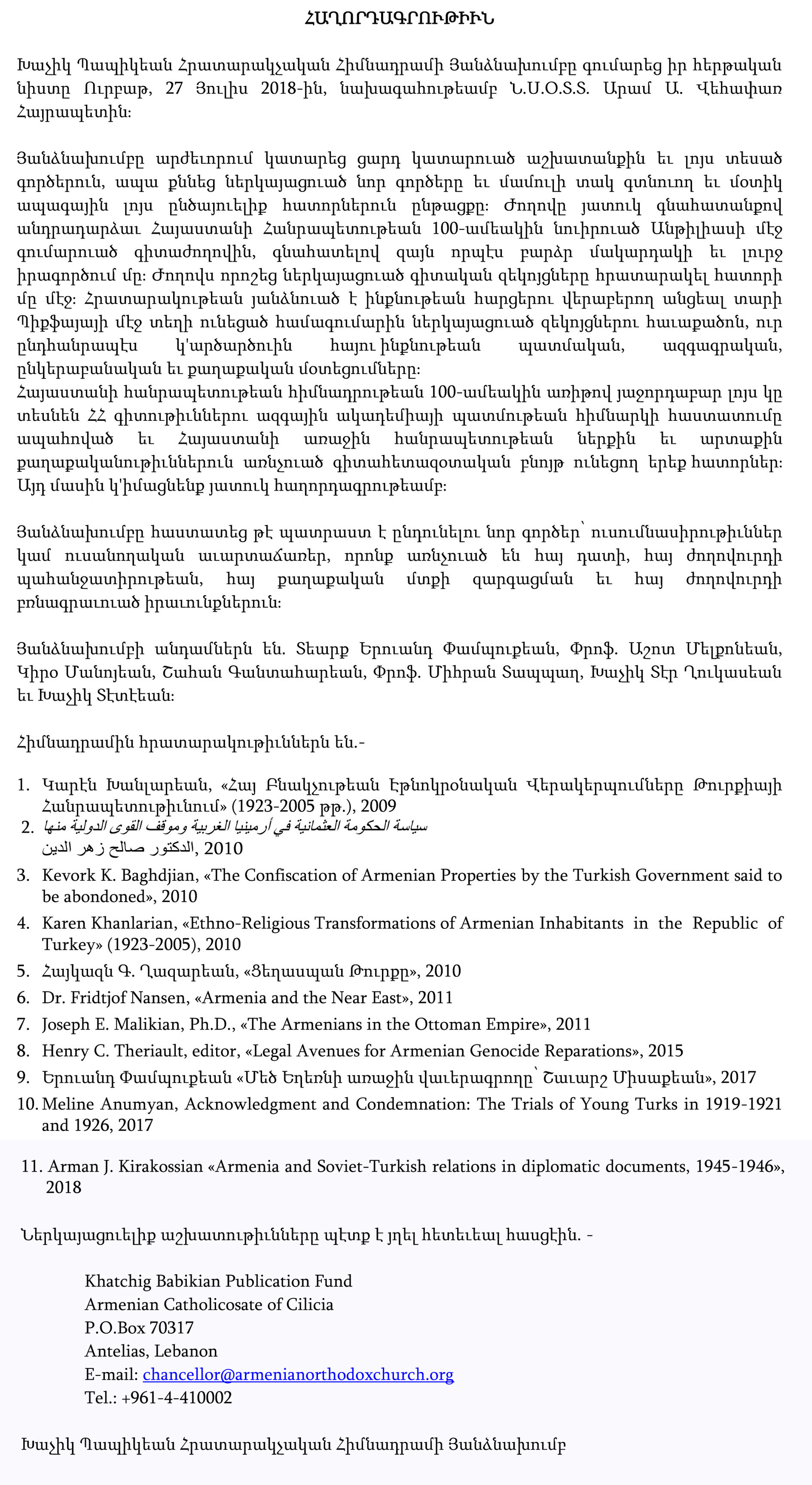 Յաւելեալ մանրամասնութիւններու համար կարելի է կապուիլ տնօրէն խորհուրդին: