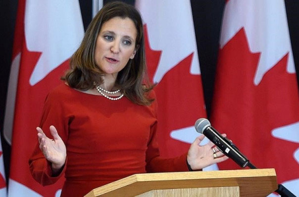 Ֆրիլանտ ընդգծած է, որ Օթաուան «խորապէս մտահոգ է իր դեսպանին արտաքսումով` ի պատասխան թագաւորութեան մէջ ձերբակալուած գործիչներու իրաւունքներու պաշտպանութեան համար կատարուած քանատական կողմի յայտարարութեան»: