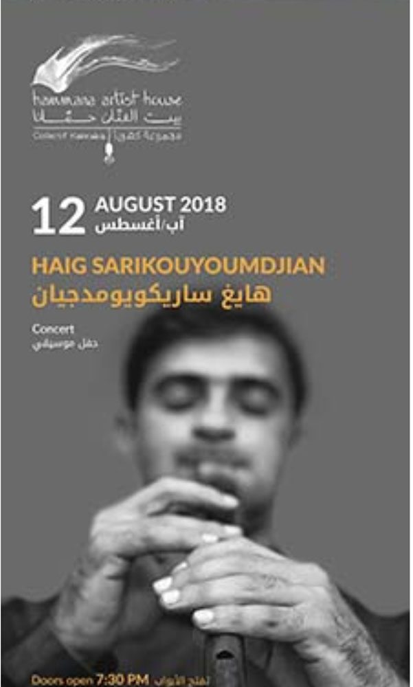 Կիրակի, 12 օգոստոս 2018-ին, ժամը 6:30-ին  «Համմանա արթիստ հաուս»-ը կը հիւրընկալէ հանրածանօթ տուտուկահար Հայկ Սարիգույումճեանը: