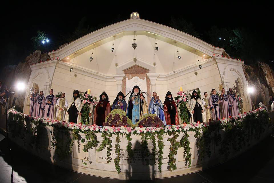 Պատարագի աւարտին, վեհափառ հայրապետը հայրապետական թափօրով Ս. խորան բարձրացաւ եւ համաձայն հայ եկեղեցւոյ հայրերու կանոններուն, ընթերցեց Աստուածամօր ուղղուած գոհաբանական աղօթքը եւ կատարեց խաղողի ու մատաղի օրհնութիւնը: