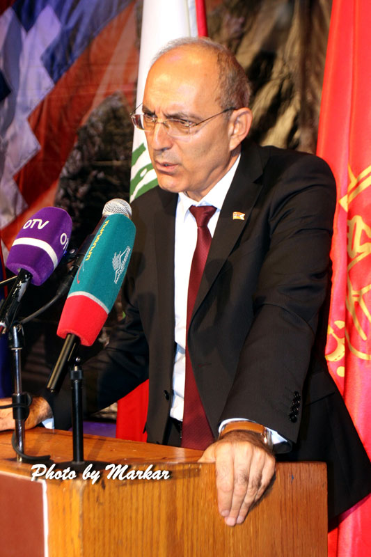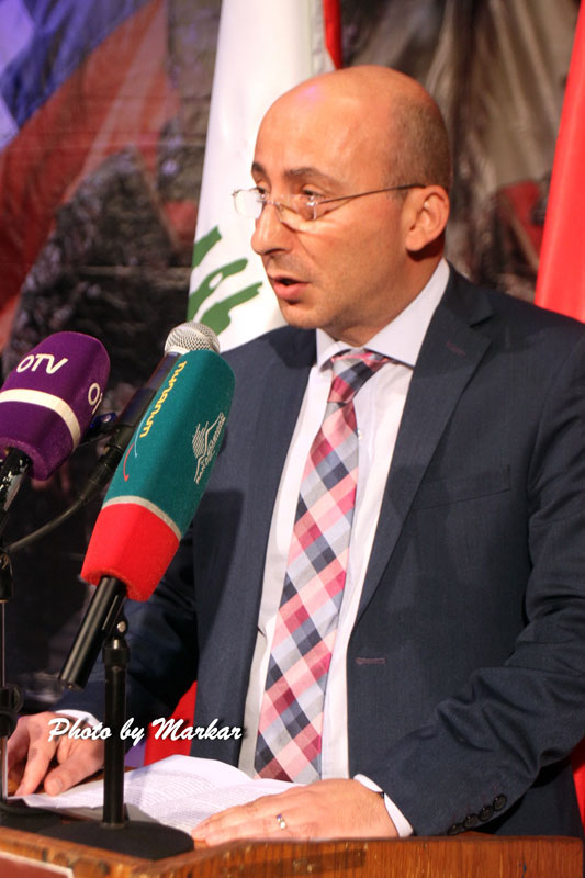 ՀՅԴ Լիբանանի Կեդրոնական կոմիտէին խօսքը փոխանցեց Յովիկ Պերթիզլեան, որ լուսարձակի տակ առնելով 1988 փետրուարին հայ ժողովուրդին առած վճռական քայլը, որ պիտի հունաւորէր հայ ազգի ապագան, ըսաւ. «Թրքական կրունկին տակ ճնշուած Արցախը սկսաւ հայոց հողահաւաքը: Արցախի ժողովուրդը եղաւ համապատասխան իր ազատատենչ նկարագիրին: Ազերիական ճնշումներուն տակ հիւծող Արցախին, Թուրքիոյ սպառնալիքներուն ենթակայ Հայաստանին եւ իր ազգային ինքնութիւնը պահելու համար գերմարդկային ճիգեր գործադրող սփիւռքին հայութեան համար Արցախի ազատագրական պայքարի յաղթանակով պսակուիլը նշեց պատմական շրջադարձ մը: Հայ ժողովուրդը խորտակեց ստորակայութեան շղթաները, ինքզինք վերահաստատեց իբրեւ կենսունակ ու մարտունակ ազգ եւ շրջանին մէջ վերականգնեց իր ռազմաքաղաքական դիրքը: Արցախի անկախացումով հայ-թրքական աշխարհաքաղաքական ճակատումը ստացաւ անտեղիտալի բնոյթ: Նժարի վրայ էին հայ ժողովուրդին գոյութիւնը եւ համաթուրանականութիւնը, կշիռքին նժարը թեքեցաւ հայերուն կողմը` այսուհետ բացառելով նահանջն ու ետդարձը. ասով կը բացատրուին կացութիւնը ի նպաստ իրենց շրջելու Ազրպէյճանի եւ Թուրքիոյ անդուլ ճիգերը»: