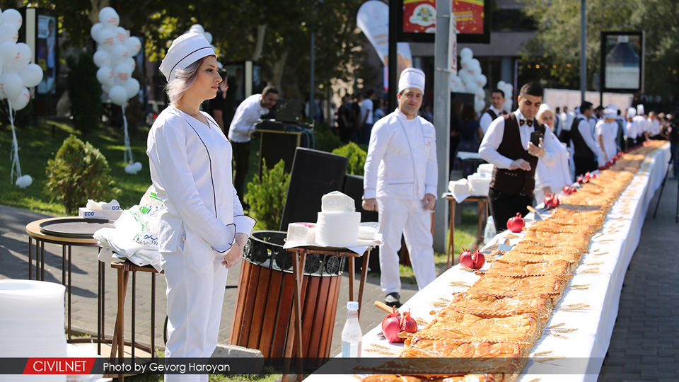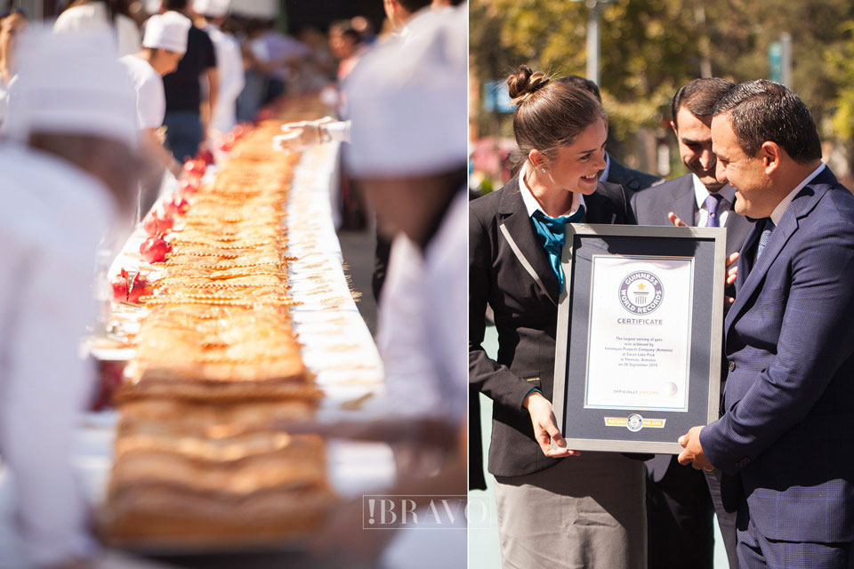 368 քիլոկրամ ծանրութիւն եւ 60 մեթր երկարութիւն ունեցող հայկական գաթան ուրբաթ, 28 սեպտեմբերին մտաւ «Կինես»-ի մրցանիշներու համաշխարհային գիրքին մէջ: Կարապի լիճի տարածքին «Երեւան 2800» ձեռնարկներու ծիրին մէջ կազմակերպուած էր գաթայի համտեսում-հիւրասիրութիւն: