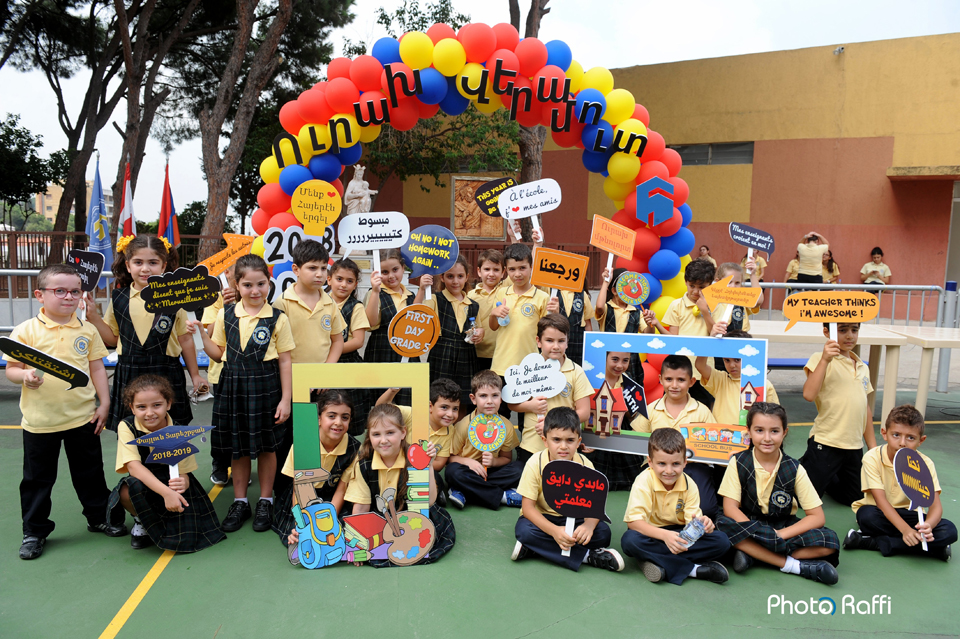 Առաւօտեան դպրոցական առաջին զանգին աշակերտները, իրենց ուսուցիչներու գլխաւորութեամբ, մէկտեղուեցան դպրոցին կեդրոնական բակը` Աստուածամօր արձանին եւ Մեսրոպ Մաշտոցի քանդակին դիմաց: